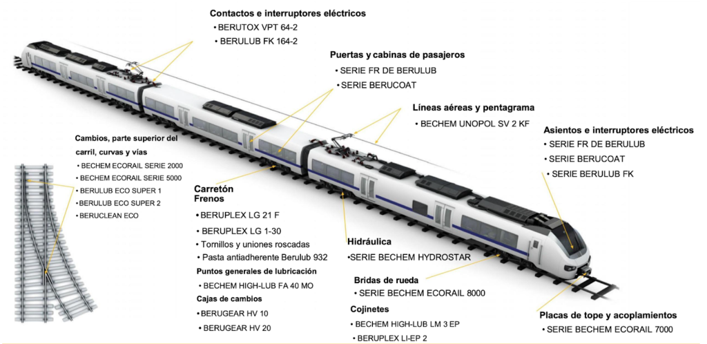 Los lubricantes y pastas BECHEM están diseñados para soportar cargas crecientes en sistemas de chasis y propulsión ferroviaria, garantizando una alta fiabilidad operativa y óptima compatibilidad entre componentes.
